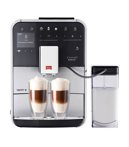 La machine à café Melitta "Barista T Smart" est extrêmement intelligente et fonctionnelle et prépare jusqu'à 18 boissons différentes. Vous pouvez déguster 2 boissons à base de lait en même temps. 2 réservoirs à grains séparés permettent d'utiliser 2 types de grains de café. 4 profils d'utilisateur vous permettent de créer 4 menus individuels. L'écran de contrôle pratique, la possibilité de contrôler la machine à café via une appli intelligente et les programmes d'entretien automatisés font de l'utilisation de cette machine à café un véritable plaisir. 18 RECETTES DE CAFÉ EN UNE SEULE TOUCHE. Préparez 4 boissons au café classiques : expresso, café noir, cappuccino et latte macchiato. Le menu des boissons supplémentaires comprend 14 boissons tendance : de l'americano au flat white ou à l'expresso doppio. Chaque boisson à base de café peut être préparée du bout des doigts. CONTRÔLE VIA L'APPLICATION INTELLIGENTE MELITTA® CONNECT Contrôlez la machine à café directement depuis votre appareil intelligent (smartophone ou tablette) grâce à l'application intelligente Melitta® Connect. Programmez et sauvegardez vos réglages individuels, modifiez les recettes de boissons au café. Des programmes didactiques vous aideront à l'entretien. 2 RÉCIPIENTS À GRAINS POUR DIFFÉRENTS TYPES DE GRAINS Le récipient à grains de café est divisé en deux parties, ce qui permet d'utiliser 2 différents types de grains. À l'aide du commutateur situé à côté du réservoir à grains, sélectionnez le réservoir dont vous allez utiliser les grains. 2 TASSES DE BOISSONS À BASE DE LAIT EN MÊME TEMPS La machine à café prépare non seulement 2 tasses de café noir à la fois, mais produit également 2 tasses de boissons avec du lait simultanément. PROCESSUS AUTHENTIQUE DE PRÉPARATION DU CAFÉ Les boissons à base de café sont préparées selon des recettes authentiques de café, en ajoutant les ingrédients dans un certain ordre. Dans la préparation du latte macchiato, l'expresso est ajouté après le lait et la mousse de lait, pour le cappuccino - vice versa. LA FONCTION ARÔME INTENSE Avant l'infusion, activez la fonction IntenseAroma et le corps du café infusé sera beaucoup plus épais et son goût beaucoup plus fort (sans changer la quantité de café ou d'eau). 4 PROFILS D'UTILISATEURS Quatre utilisateurs différents ont la possibilité de créer leur propre menu, de programmer et sauvegarder des recettes de boissons à base de café à leur convenance. ÉCRAN COLORÉ Grâce à l'écran coloré et aux icônes tactiles claires, la machine à café est très facile à utiliser. MOULIN À CAFÉ SUPER SILENCIEUX Que ce soit tôt le matin ou tard le soir, utilisez la machine à café sans avoir peur de réveiller la maisonnée. L'une des premières machines à café du marché à avoir été récompensée par le Quiet Mark. ENTRETIEN FACILE Les programmes automatiques de rinçage, de nettoyage et de détartrage permettent de garantir une hygiène irréprochable. Il est possible d'utiliser un filtre à eau (en le changeant régulièrement, il... ...