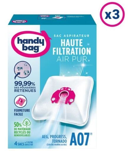 Lot de 12 Sacs Aspirateurs + 1 Filtre Sortie D'Air À Découper - A07 - Handy Bag