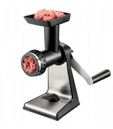 Hachoir à viande Transforma Gefu 19090 est doté de 2 plaques perforées (perforations grossières et fines) pour hacher viande, poisson et légumes, de couteau à aillette auto-affûté, de poussoir/clé pour pousser les aliments et pour resserrer/dévisser la fermeture à vis, et de l'entonnoir à saucisses.- Embout spécial pâtisserie avec 5 motifs- Travail simplifié grâce à la vis transporteuse, spécialement conçue et au filetage intérieur- Fermeture à baïonnette pour une transformation facile des éléments.- Support haut pour placer de grands plats/bols au-dessous.- Avec ventouse et pince de table extra haute pour plan de travail jusqu'à 8 cm d'épaisseur. Type : Hachoir à viande. Couleur : Inox. Matériau : Inox de qualité supérieure / synthétique. Dimensions : 29 x 13,5 x 30,5 cm. Compatible lave-vaisselle (excepté support et manivelle). ...