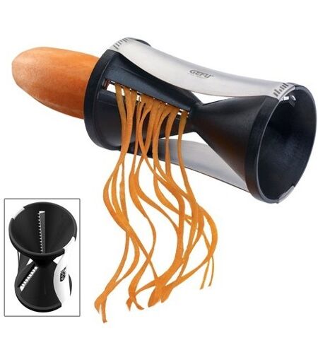 Le taille-légumes SPIRELLI de GEFU est un accessoire indispensable dans votre cuisine. Préparez des juliennes de légumes sans fin avec des radis, des carottes ou concombres en un temps record. Conçu comme un taille-crayon, vous n'avez qu'à tourner votre légumes dedans. 2 tailles possibles : 2 x 3mm ou 3,5 x 5mm Longueur sans fin des juliennes. Livré avec poussoir. Passe au lave-vaisselle. ...