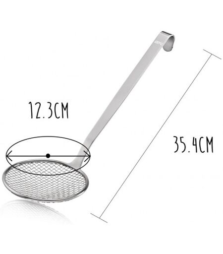 L'ustensile idéal pour retirer les fritures Fabriquée en acier inox : bonne résistance à la corrosion Crochet de suspension intégré au manche : rangement mural Compatible lave-vaisselle : gain de temps assuré Design intemporel - Un indispensable en cuisine Dimension : 35.4 cm - Diamètre : 12.3cm ...