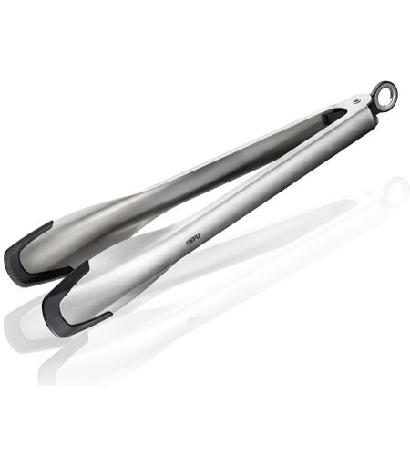 Cette pince Gefu pour servir et cuisiner au quotidien ! Acier inoxydable de qualité supérieure : robuste et résistant Embouts striés en silicone alimentaire noir : anti-adhésif Résistance maximale : +250°C Adaptée pour la poêle Mécanisme de fermeture pratique Œillet de suspension Compatible lave-vaisselle : entretien rapide et pratique Dimensions : L. 38,5 cm, l. 8 cm, H. 4,2 cm ...
