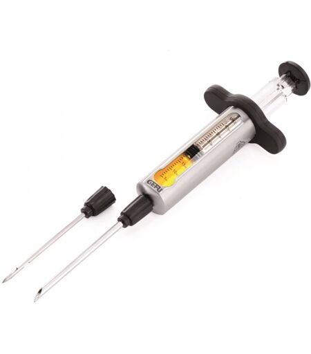 L'accessoire parfait pour tous les fans de barbecue Matériaux : acier inoxydable haute qualité et polymère 2 types d'aiguilles : 1 fine et 1 épaisse à adapter à la viande Cylindre à piston - Contenance de 40ml Permet de faire mariner vos viandes à coeur ...