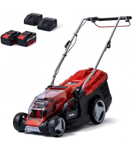 La tondeuse sans fil GE-CM 36/36 Li (2x4.0Ah) est membre de la famille Power X-change et est recommandée pour une surface de pelouse de 400 m2. Le Highwheeler est entraîné par un moteur brushless à éclairage unique, un moteur électrique sans balai et dispose d'un réglage central de la hauteur de coupe à 6 niveaux, d'un patin de guidage rabattable réglable en hauteur à 3 positions et d'un bac de récupération avec indicateur de niveau. La tondeuse est dotée d'un boîtier en plastique résistant aux chocs de haute qualité et d'une poignée de transport intégrée. 2 accus 4,0 Ah avec affichage du niveau de LED adaptés à tous les appareils de la gamme de systèmes - et 2 chargeurs inclus dans la livraison.. . Ce texte a été traduit par une machine. Batterie 18 V (2x), 4000 mAh, Li-Ion. Durée de rechargement : 80min. Vitesse de rotation à vide 3400 min'-1. Largeur de coupe 36 cm. Réglage de la hauteur de coupe 6 niveaux, 25/35/45/55/65/75 mm, central. Volume du récipient de pêche 40 L. Diamètre des roues avant : 145 mm. Diamètre de roue arrière 220 mm Donnees techniques : • Capacité d'accu (détails) : 2 x 4.0 Ah • Capacité du bac de récupération : 40 l • Convient pour : 400 m² • Durée de charge : 80 min • Hauteur de coupe : 25 - 75 mm • Largeur de coupe (max.) : 36 cm • Poids : 17.42 kg • Réglage de la hauteur de coupe : 6 x • Spécificités de l'outil de jardinage : avec batterie • Technologie piles/accus : Li-Ion • Tension de l'accu (détail) : 2 x 18 V V • Type de fonctionnement (outils de jardinage) : sans fil • Type de moteur : Moteur brushless Einhell - avec moteur électrique sans balai • Type de produit : Tondeuse à gazon> ...