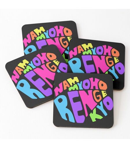 Liège Sous-Verres En Bois Nam Myoho Renge Kyo Mantra Bouddhiste Arc-En-Ciel Brillant Noir 9,5 Cm Lot De 4 Pour Boissons Café Table B