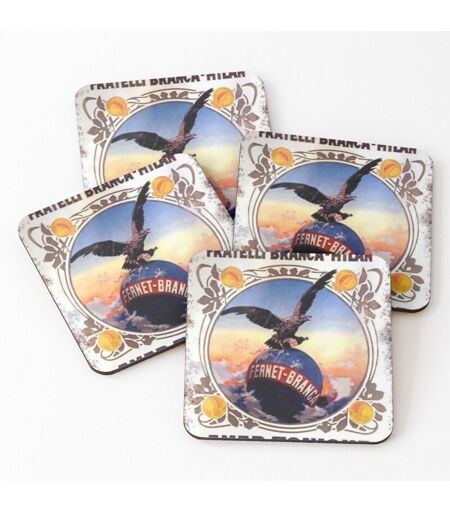 Liège Sous-Verres En Bois Fernet Branca Argentine 9,5 Cm Lot De 4 Pour Boissons Café Table B