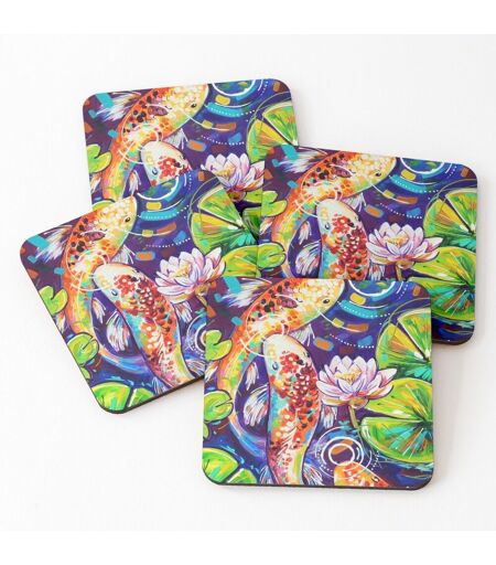 Liège Sous-Verres En Bois 3 Poissons Koï 9,5 Cm Lot De 4 Pour Boissons Café Table