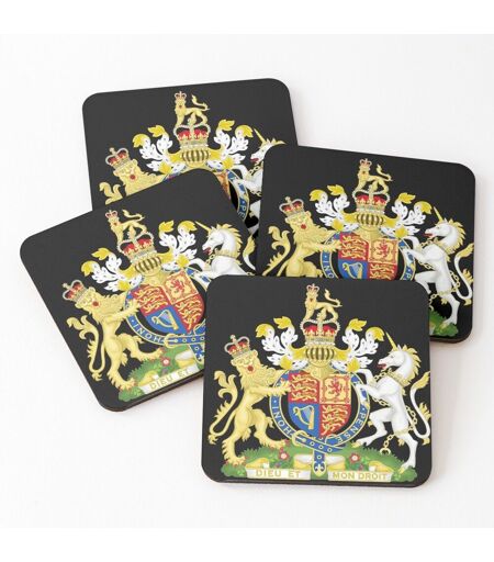 Liège Sous-Verres En Bois Armoiries Royales Du Royaume-Uni 9,5 Cm Lot De 4 Pour Boissons Café Table B