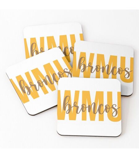Liège Sous-Verres En Bois Broncos De L'ouest Du Michigan 9,5 Cm Lot De 4 Pour Boissons Café Table B