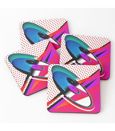 Liège Sous-Verres En Bois Album Rock Rétro En Vinyle Des Années 80 Pop Art À Pois 9,5 Cm Lot De 4 Pour Boissons Café Tabl