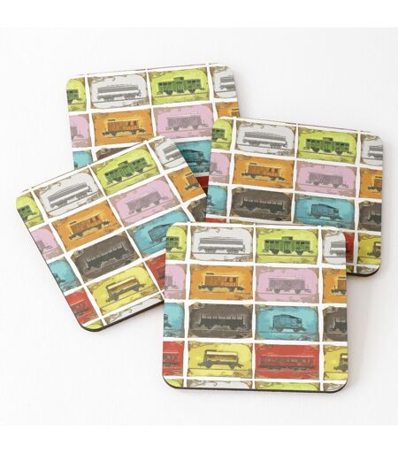 Liège Sous-Verres En Bois Ticket To Ride : Les Trains : Sur Blanc 9,5 Cm Lot De 4 Pour Boissons Café Table B