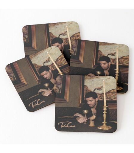 Liège Sous-Verres En Bois Drake Prends Soin De Toi 9,5 Cm Lot De 4 Pour Boissons Café Table B