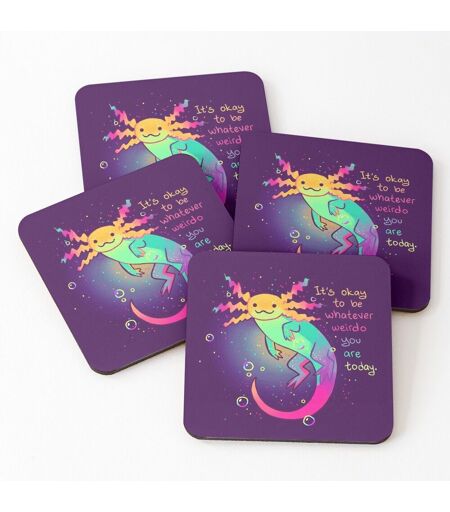 Liège Sous-Verres En Bois C'est Normal D'être L'étrange Personne Que Vous Êtes Aujourd'hui - Axolotl Arc-En-Ciel 9,5 Cm Lot De 4 Pour Boissons Café Tabl