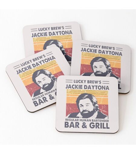 Liège Sous-Verres En Bois Lucky Brews Jackie Daytona Regular Human Bartender Bar And Grill Vintage Retro 9,5 Cm Lot De 4 Pour Boissons Café Table B
