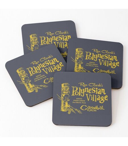 Liège Sous-Verres En Bois Le Village Polynésien De Ren Clark - Fort Worth, Texas 9,5 Cm Lot De 4 Pour Boissons Café Table