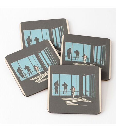 Liège Sous-Verres En Bois Ferris Bueller - Tour Sears 9,5 Cm Lot De 4 Pour Boissons Café Table B