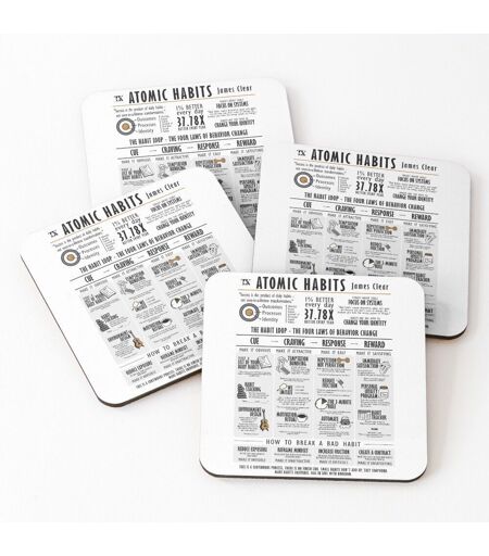 Liège Sous-Verres En Bois Livre Visuel Atomic Habits (James Clear) 9,5 Cm Lot De 4 Pour Boissons Café Table B