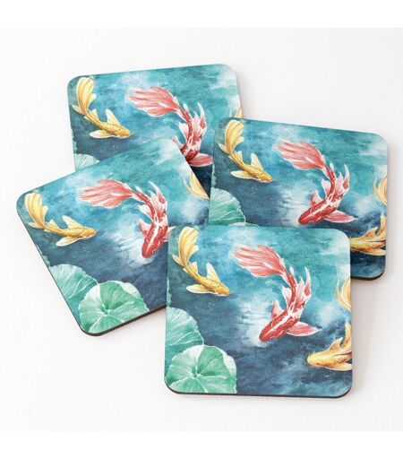 Liège Sous-Verres En Bois Poissons Koi Et Nénuphars 9,5 Cm Lot De 4 Pour Boissons Café Table