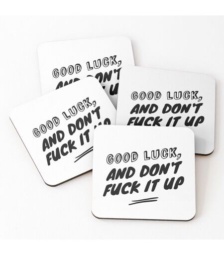 Liège Sous-Verres En Bois Bonne Chance Et Ne Gâche Rien 9,5 Cm Lot De 4 Pour Boissons Café Table
