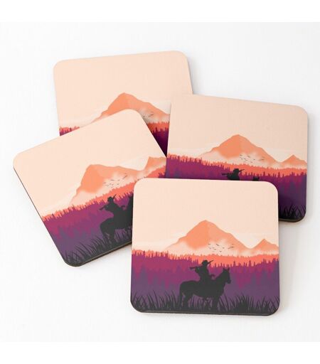 Liège Sous-Verres En Bois Coucher De Soleil À L'extrême Ouest 9,5 Cm Lot De 4 Pour Boissons Café Table