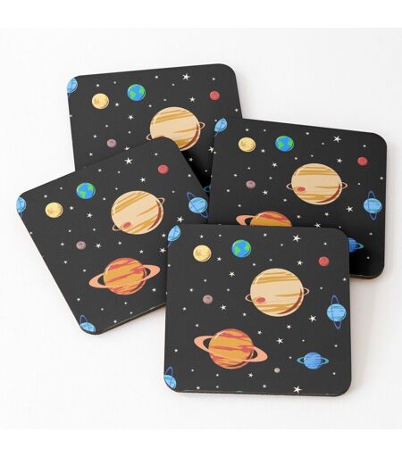 Liège Sous-Verres En Bois Motif De Planètes Mignonnes 9,5 Cm Lot De 4 Pour Boissons Café Table