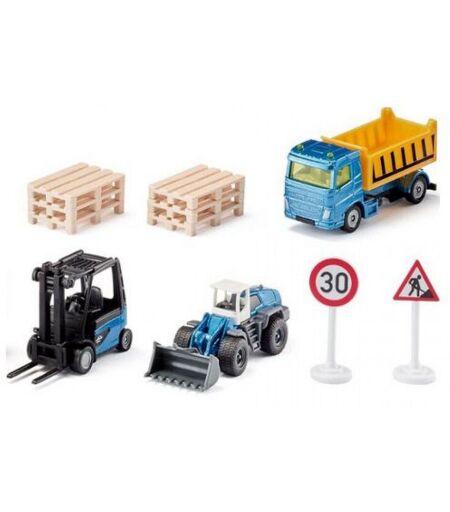 3 v?hicules de chantiers plastique et m?tal . accessoires en plastiques : palettes et panneaux de circulations ...