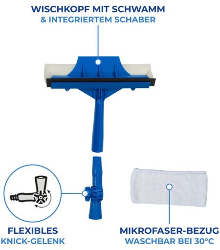 Raclette à vitres extra longue avec manche télescopique Maximex Wenko Jusqu'à 5,3 m de portée, Tête réglable, 25 x 83-332 cm, Bleu/gris
