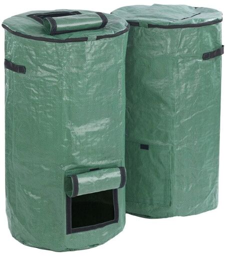 Grands composteurs pour déchets organiques d'une capacité de 125 litres chacun - Votre investissement écologique pour un jardin fertile Solution écologique : Deux composteurs d'une capacité de 125 litres chacun, permettant de transformer les déchets de jardin et de cuisine en précieux humus. Facile à utiliser : Remplissage pratique grâce à une grande ouverture avec fermeture éclair et un rabat supplémentaire en velcro pour de plus petites quantités de déchets. Accès au humus sans effort : Une fenêtre pratique en bas du composteur facilite le retrait du produit fini, et des poignées solides permettent un transport facile. Matériau résistant : Fabriqué en plastique résistant aux intempéries et aux UV, garantissant une utilisation durable. Engagez-vous pour l'environnement : L'ensemble de deux composteurs est non seulement un soutien au cycle de vie naturel, mais aussi un pas important vers la réduction des déchets. ...