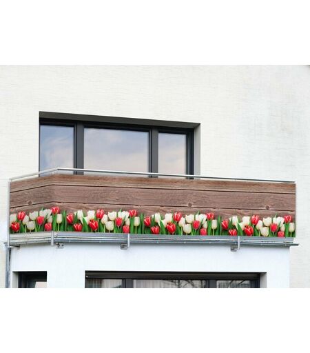 Housse de balcon qui transformera votre balcon en jardin fleuri Assure l'intimité : en installant une couverture de balcon, vous prendrez soin de votre intimité. Il vous protégera non seulement des rafales de vent, mais également des yeux des voisins et des passants. Grâce à cela, vous créerez des conditions idéales pour travailler et vous reposer sur votre balcon. Durable : fabriquée en plastique durable et résistant aux UV, la housse se caractérise par une grande résistance. Elle n'est pas non plus effrayée par les pluies et la saleté qui s'y forme peut être facilement enlevée avec un chiffon humide. En tulipes : des tulipes blanches et rouges sur un fond de parcan en bois feront fleurir votre balcon au printemps. Égayez l'espace de votre environnement et impressionnez votre balcon grâce à une solution design unique. Montage : des attaches de fixation (25 pièces) sont incluses dans le kit. Vous pouvez facilement l'installer sur votre balcon. Le matériau durable et résistant aux UV à ...