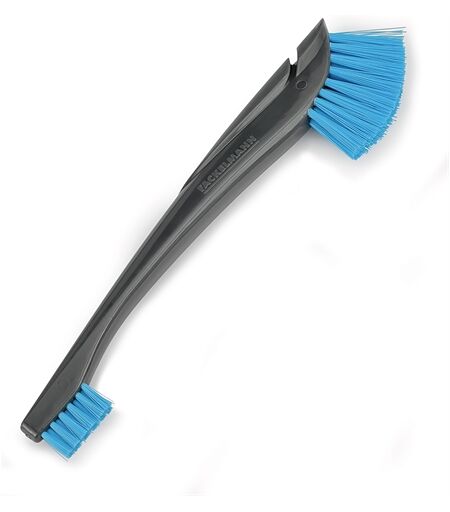 Une brosse 2 en 1 très astucieuse. La grande brosse désincruste facilement les surfaces planes. La petite brosse, comme une brosse à dents, nettoie les endroits plus difficiles daccès, les joints