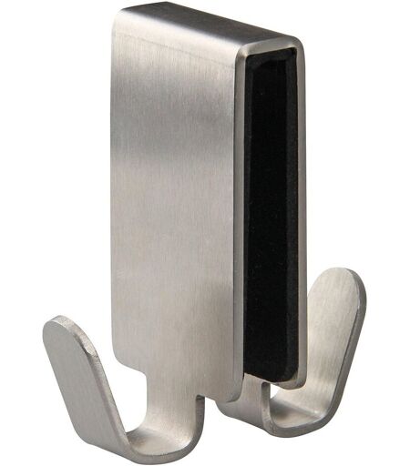 Fackelmann 61238 Crochet double en inox à vitre, Crochet double pour paroi de douche, Acier inoxydable, 7,5x7cm
