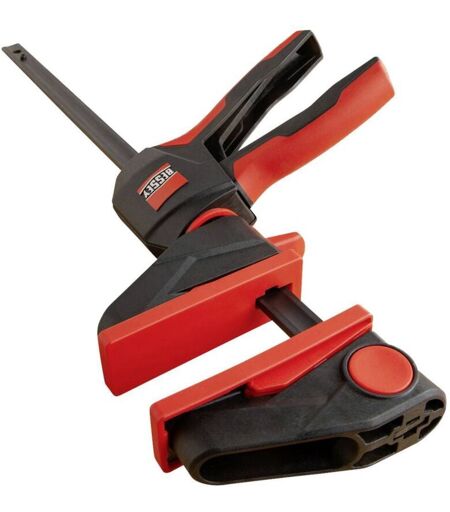 Informations techniques Envergure max. : 300 mm Force de serrage : 1400 N Mesures d'empattement : 80 mm Plage d'écartement : 195 - 465 mm Poids : 930 g Les contraintes d'une main de haute qualité de la maison BESSEY sont désormais étendues avec une option supplémentaire : outre EHZ, EZS et DUO, les artisans de la nouvelle série EZ peuvent choisir parmi quatre tailles et dix variantes au total pour une utilisation très différente. Ainsi, les professionnels et les bricoleurs ont encore plus de choix pour trouver leur outil idéal si la seconde main doit rester libre. Confort pratique La gamme complète offre une manipulation ergonomique grâce à une technique sophistiquée : Grâce à la poignée en plastique à 2 composants de haute qualité avec levier en forme de pommeau derrière le rail pour un accès sécurisé dans les deux sens Grâce au levier de déverrouillage intégré dans la poignée pour un réglage rapide de la barre coulissante et pour le desserrage des pinces Nombreuses utilisations ...