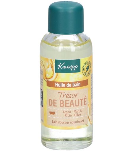 La huile corporelle riche Kneipp® Trésor de beauté contient une combinaison de quatre précieuses huiles naturelles qui nourrissent intensément la peau et préservent son hydratation. Elle régénère et renforce la barrière cutanée - pour une peau lisse et veloutée.Nos huiles pour la peau contiennent une forte proportion d'huiles végétales nourrissantes ainsi que de la vitamine E qui protège les cellules.BénéficesL'huile d'argan confère à la peau sa souplesse pour un grain de peau uniforme.L'huile de marula renforce la barrière cutanée et nourrit la peau.L'huile d'arbre miraculeux a un effet relipidant et compense ainsi les pertes d'hydratation.L'huile d'olive protège la peau et lui confère un aspect lisse et velouté.IndicationNourrit intésement la peau et préserver son hydratationApplicationAppliquer en couche fine et masser délicatement pour faire pénétrer. Il est particulièrement recommandé de l'appliquer directement après la douche ou le bain, sur une peau encore humide.IngrédientsHelianthus Annuus Hybrid Oil, Olus (Vegetable) Oil, Isopropyl Myristate, Caprylic/Capric Triglyceride, Tocopheryl Acetate, Prunus Amygdalus Dulcis (Sweet Almond) Oil, Sclerocarya Birrea Seed Oil, Argania Spinosa Kernel Oil, Olea Europaea (Olive) Fruit Oil, Ricinus Communis (Castor) Seed Oil, Pogostemon Cablin Leaf Oil, Citrus Aurantium Dulcis (Orange) Peel Oil, Citrus Limon (Lemon) Peel Oil, Linalool, Limonene, Coumarin, Alpha-Isomethyl Ionone, Parfum (Fragrance), Glycine Soja (Soybean) Oil, Tocopherol. ...