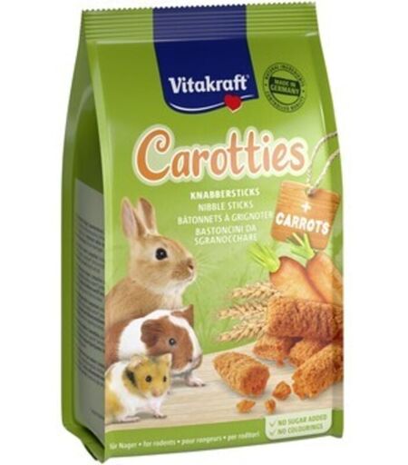 Vitakraft Carotties 50 g - Friandises à la carotte pour rongeurs Des collations croquantes, délicieuses et saines pour vos rongeurs ! Les carottes sont le complément parfait à votre alimentation quotidienne, fournissant des vitamines et des minéraux. Fabriquées à partir d'ingrédients de haute qualité, elles garderont vos animaux heureux et satisfaits. Bâtonnets de carottes savoureux et croquants. Le complément alimentaire parfait pour les rongeurs. Une source de vitamines et de minéraux. Fabriqué en Allemagne à partir d'ingrédients de haute qualité. Parfait comme récompense ou comme collation savoureuse. Vos rongeurs méritent le meilleur ! La routine quotidienne de votre animal ne se résume pas à dormir et à courir dans sa roue. C'est aussi des moments de joie et de délicieuses collations qui égayeront sa journée et le rendront encore plus heureux. Les carottes sont le moyen idéal de régaler vos petits amis. Servez-les en récompense pour un bon comportement ou simplement comme ...