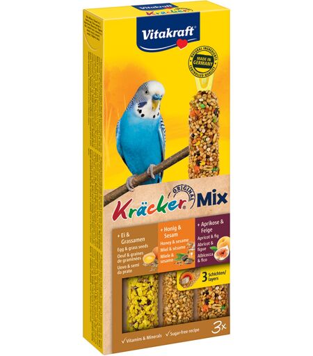 Vitakraft Trio-Mix Crackers pour perruche 3 friandises œuf / abricot / miel