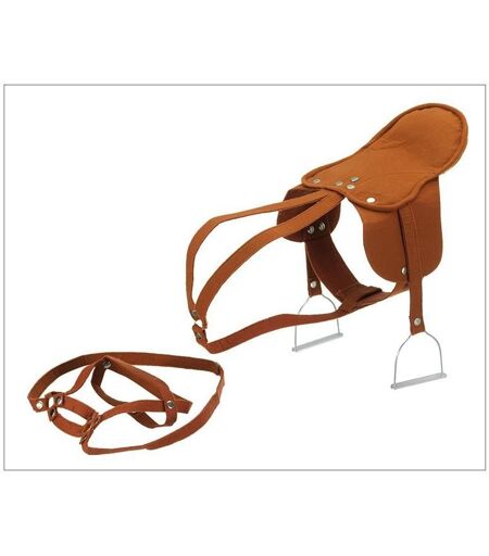 Accessoire pour cheval Happy People : - - de couleur brune - - avec étriers - - Fournie avec un harnais - - Matière : tissus + Métal (étriers). ...