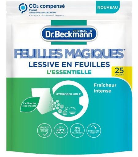 Dr. Beckmann Lessive en feuilles l'essentielle x 25 blanc et couleur.