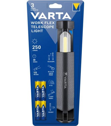 Torche Varta Work Flex Telescope Light avec 4 piles AA