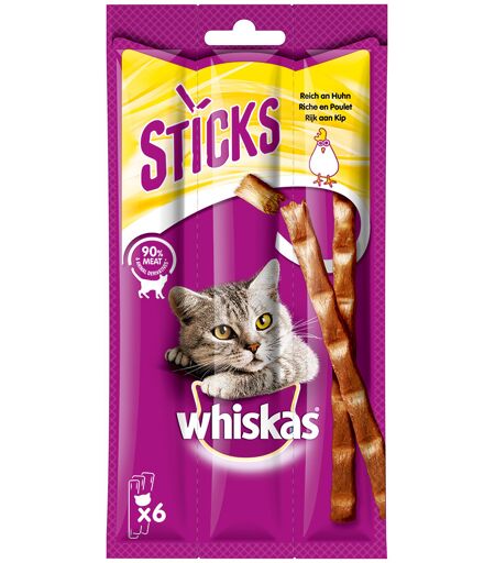 Riches en viande, les délicieuses friandises Whiskas Sticks pour chat régaleront sans aucun doute les papilles de votre petit compagnon. Offrez à votre chat une pause gourmande en lui donnant un stick Whiskas par jour. Que votre chat préfère le... ...