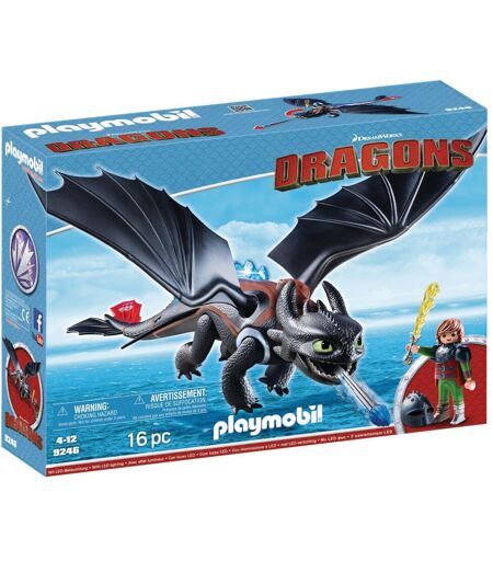 Playmobil Harold et Krokmou qui peut envoyer une boule de feu avec sa gueule. L'aileron rouge est amovible. Les écailles dorsales s'illuminent (nécessite 1 pile AAA non fournie). 16 pièces.. Dimensions Krokmou: 38x49.5x20 cm (LxPxH). De 4 à 12 ans ...