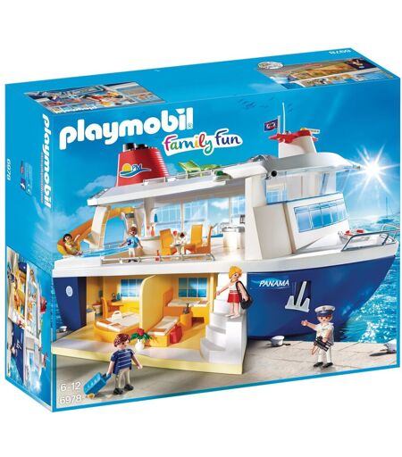 Bateau de croisière Référence de l'article : 6978 Les deux cabines peuvent être ressorties de la coque pour mieux jouer. La piscine peut être remplie d'eau, son toboggan démarre depuis le pont. Avec 5 personnages De nombreux accessoires Canot de sauvetage compatible avec le moteur (ref. 7350*) Divers éléments peuvent être retirés ou déplacés pour faciliter le jeu. La scène avec artiste (ref. 6983*) peut être placée sur le bateau Dimensions (Lxlxh) : 74 x 36 x 21 cm. À partir de : 6 ans Attention : Le bateau ne flotte pas, il ne peut être placé sur l'eau et n'est pas plus compatible avec le moteur (ref. 7350*) *Vendu séparément ...