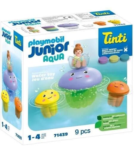 Découvrez les fonctionnalités de ce jouet, qui accompagnent le développement de votre enfant : Grande méduse avec chambre de sécurité pour la tablette de bain, équipée d'un mécanisme de torsion/pression. Gobelet transparent détachable pour illustrer l'eau colorée. Trois tablettes de bain Tinti aux couleurs verte, turquoise et violette, au parfum de fraise. Tablettes de bain disponibles dans des packs de recharge séparés. L'eau dans les petites méduses peut être évacuée grâce aux trous de drainage. PLAYMOBIL est le premier grand fabricant de jouets à utiliser du plastique d'origine végétale dans l'ensemble de sa gamme de produits pour tout-petits. PLAYMOBIL JUNIOR - Conçu pour nos plus jeunes fans ! Parfait pour les petites mains et les découvertes adaptées aux tout-petits. Avec de nombreuses fonctionnalités attrayantes telles que l'empilage, les casse-têtes ou le tri amusant. Laissez votre enfant âgé de 1 à 4 ans faire ses premiers pas dans le monde PLAYMOBIL avec PLAYMOBIL JUNIOR ! Offrez à votre enfant une sécurité maximale : les produits PLAYMOBIL JUNIOR sont fabriqués dans l'Union Européenne, sans plastifiants ni petites pièces risquant d'être avalées. Au début de l'année 2024, PLAYMOBIL a converti la production de tous les articles de sa gamme pour tout-petits, remplaçant les matériaux dérivés de ressources fossiles par des matériaux à base de matières d'origine végétale. Ainsi, tous les articles de cette gamme sont désormais fabriqués à partir de plastiques qui contiennent jusqu'à 90% de matières traçables, provenant de la production alimentaire ou de papier (taux calculé avec la méthode du bilan massique utilisée dans l'économie circulaire et basée sur la norme ISCC 208). À cette occasion, la gamme PLAYMOBIL pour tout-petits change de nom : PLAYMOBIL 1.2.3 devient PLAYMOBIL JUNIOR. Pour nos emballages PLAYMOBIL JUNIOR, nous utilisons au moins 90% de carton recyclé et 100% de papier recyclé, évitant autant que possible le plastique. ...