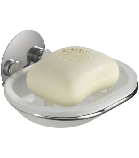 WENKO Porte savon mural, porte savon Turbo-Loc® fixation sans perçage, Acier, 13x6x11 cm, Brillant