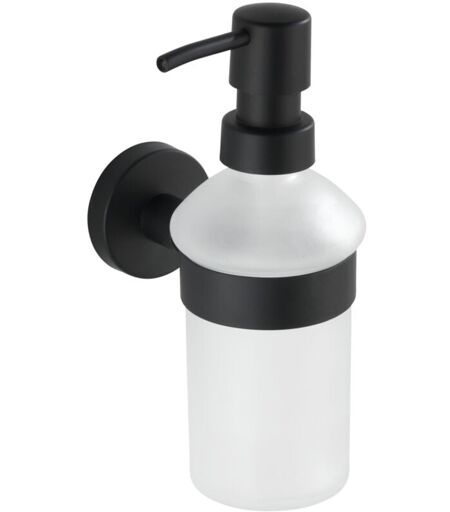 Distributeur de savon Wenko Bosio noir mat mural 210 ml design inox salle de bain cuisine porte-savon sans perçage en verre satiné haute qualité 7 x