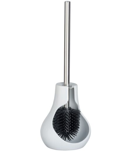 Brosse wc Neo Drop, Design goutte Wenko Manche acier inox, Tête de brosse silicone remplaçable 7,5cm, Céramique et acier inox, 17x40x13,5cm, Blanc