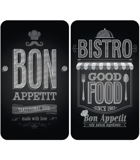 Protection de plaques cuisson "Bon appétit" WENKO, Lot de 2, Couvre plaque universel, Résistant aux chocs, Hygiénique, Pieds inclus, Verre trempé,