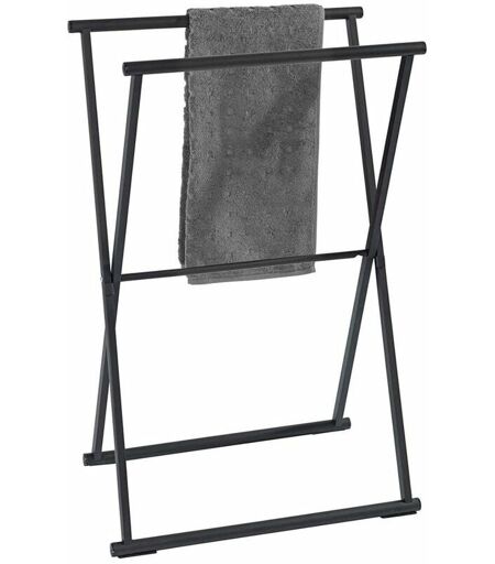 Wenko - Porte-serviettes salle de bain sur pied Lava, Porte Serviette pliable, acier verni , 53,5x80,5x35 cm, noir mat