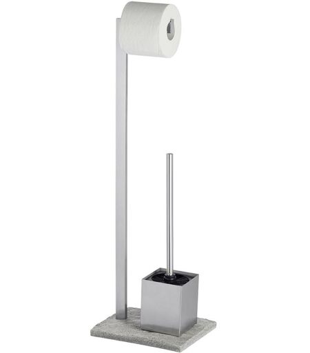 Combiné wc 2en1 Granit Wenko Brosse wc à tête remplaçable et dérouleur papier, Acier inox et poly résine effet pierre, 23x73,5x19,5cm, Chromé et