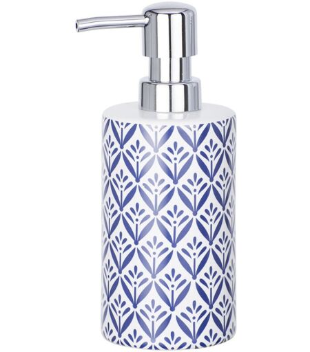 Distributeur Savon Liquide Lorca, Capacité 360 ml, céramique avec impression, 8,5x18x7 cm, bleu - blanc - Wenko