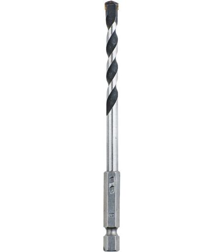 Mèche à pierre au carbure, queue 6-pans 1/4"" ISO 1173, E 6.3, plaquette carbure soudée à autes températures, hélice semi-circulaire pour un bon transport de la farine de perçage, pour visseuses et perceuses sans fil avec porte-embouts 1/4""ISO 1173. Couleur noire brunie, surface rectifiée et polie, pour ouvrages de maçonnerie, pierre naturelle et synthétique et grès. ...